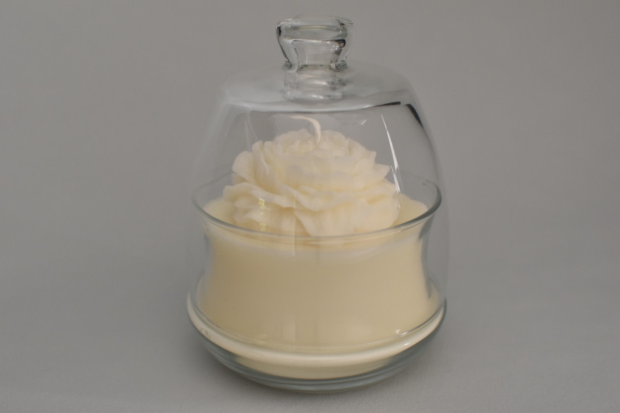 El tamaño del envase grande con campana de cristal es de 14cm de alto y 12cm de ancho.