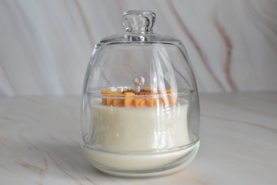 200 Gramos de Cera vegetal de Soja decorada con un girasol hecho con cera.