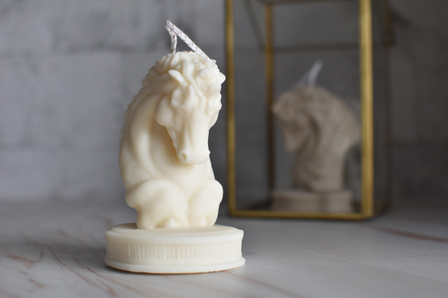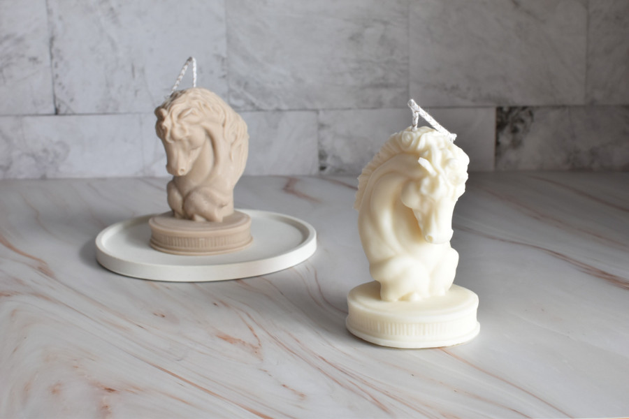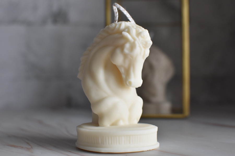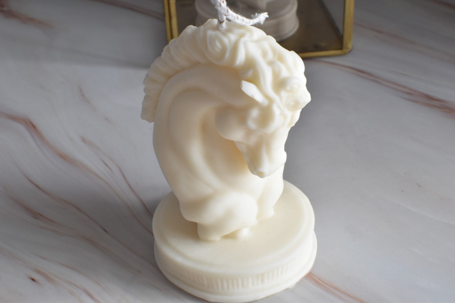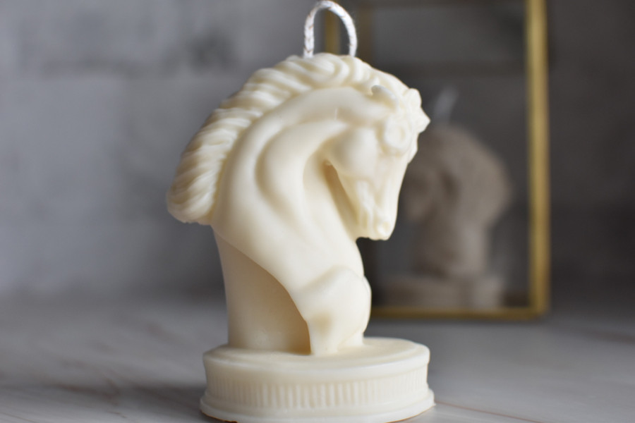 Ilumina tu hogar con nuestra vela en forma de cabeza de caballo. Hecha a mano con cera de alta calidad, esta vela no solo ofrece un suave resplandor, sino que también añade un toque de elegancia y encanto ecuestre a cualquier espacio.