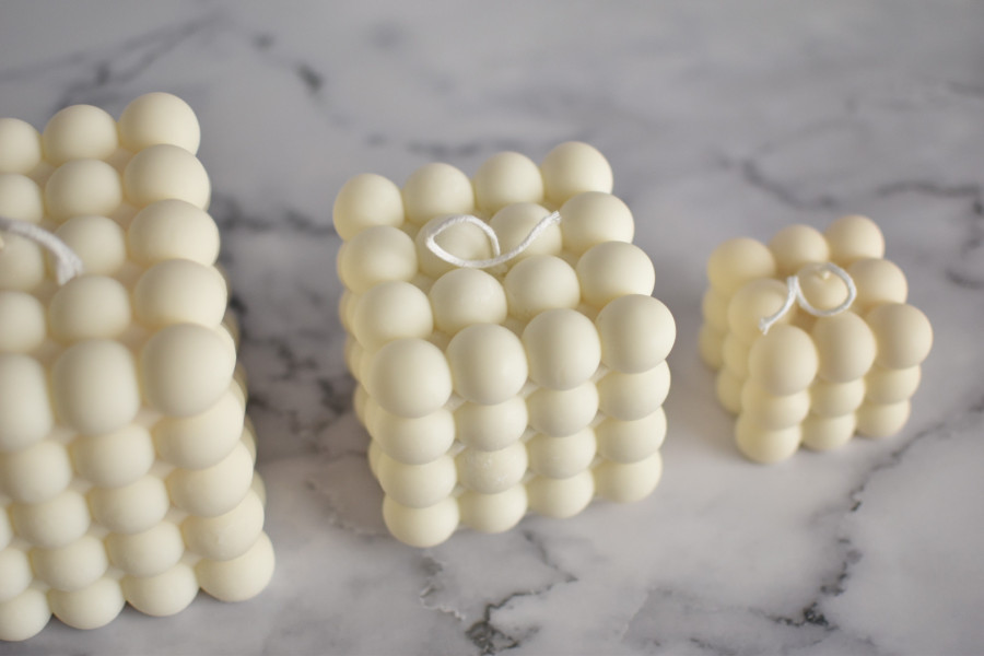 El tamaño de la vela pequeña es de 6cm de alto, 6cm de ancho y 160 gramos aproximados.