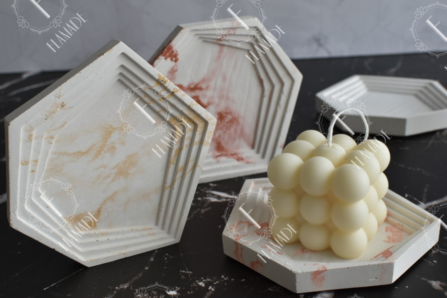 Para la vela Cubo pequeña todas nuestras bandejas de cemento hechas a mano tienen el tamaño correcto para la protección de las superficies.