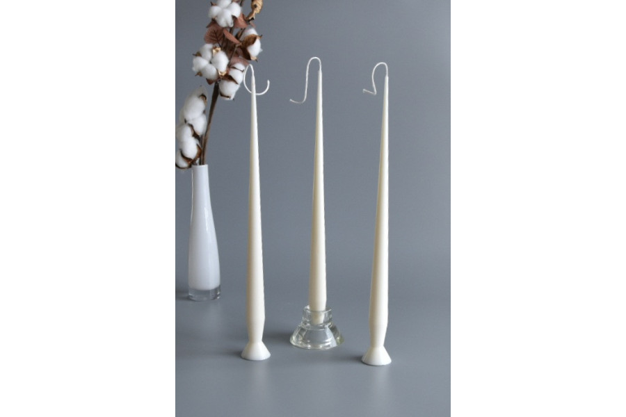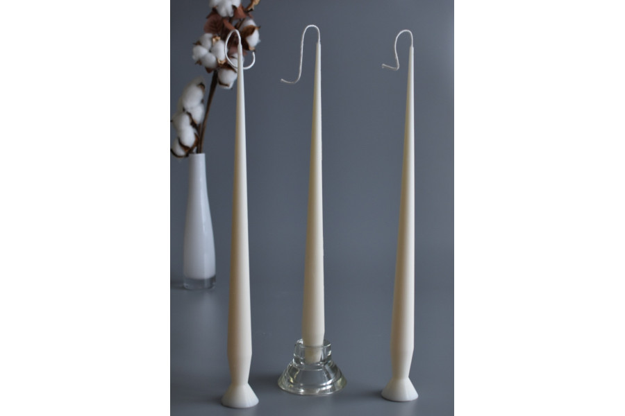 La base de 4 cm permite que la vela se mantenga de pie o en porta velas anchos, si se corta la base puede utilizarse en candelabros de base fina.